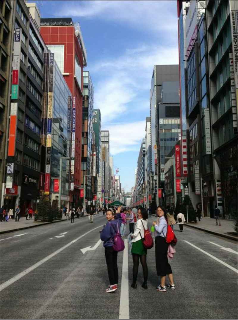 游览银座,银座是东京最繁华的商业区日本黄金之地-,缤纷玩具城、BURBERRY时装店、HELLO KITTY专门店及资生堂化妆品专门店,这里有“东京的心脏”之称。